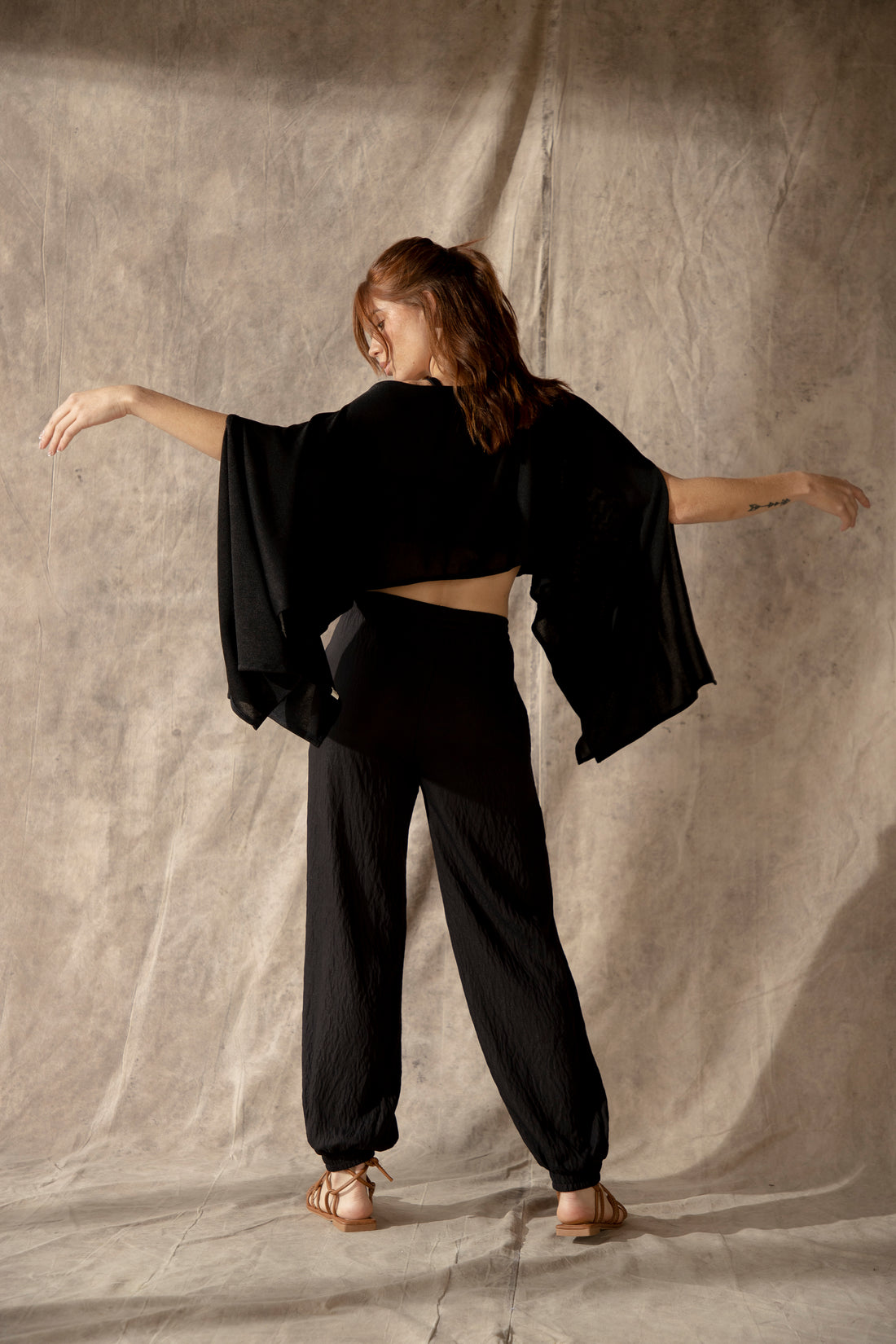 Un homenaje vivo a la cultura indígena. Cada pieza está hecha con fibras sostenibles y una mola única bordada a mano.