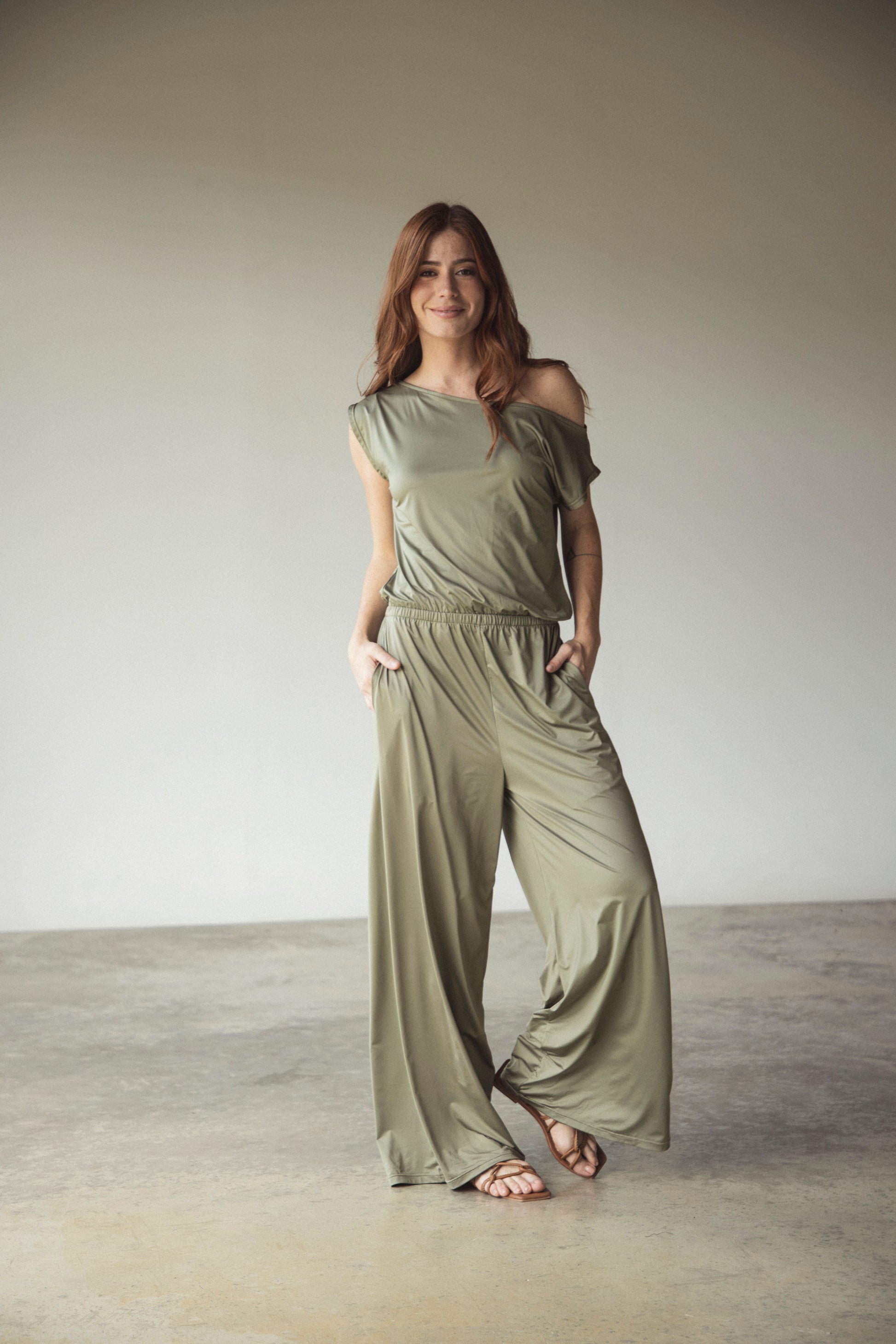 Nuestro enterizo cuello bandeja es una pieza supercómoda, con una silueta amplia para que te sientas libre todo el tiempo. Su versatilidad te permite usarlo en un viaje con unos tenis para estar cómoda y tranquila, o elevarlo con unos zapatos más formales, un abrigo, y quedas perfecta para una ocasión más elegante. Atrévete a combinar nuestras prendas.