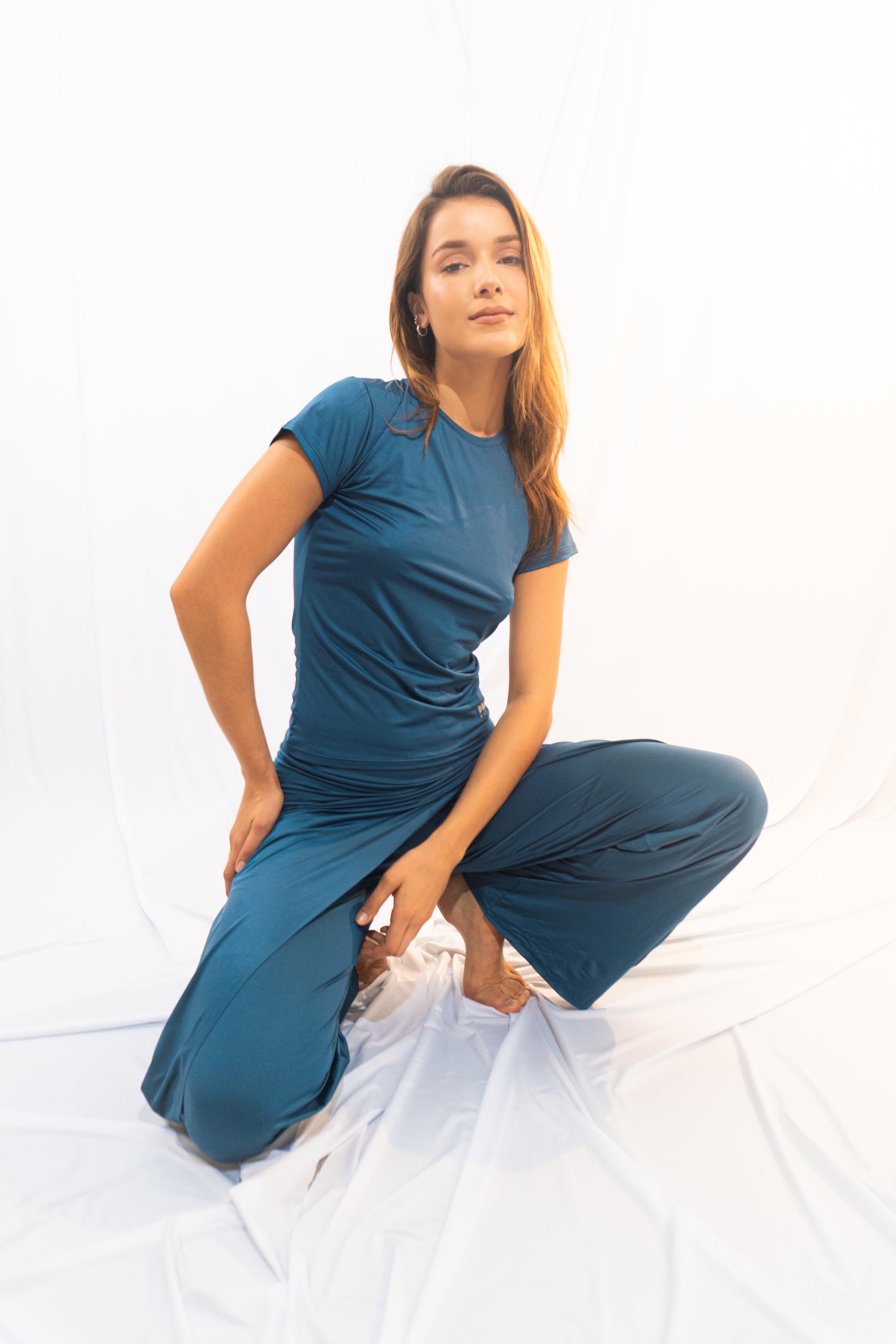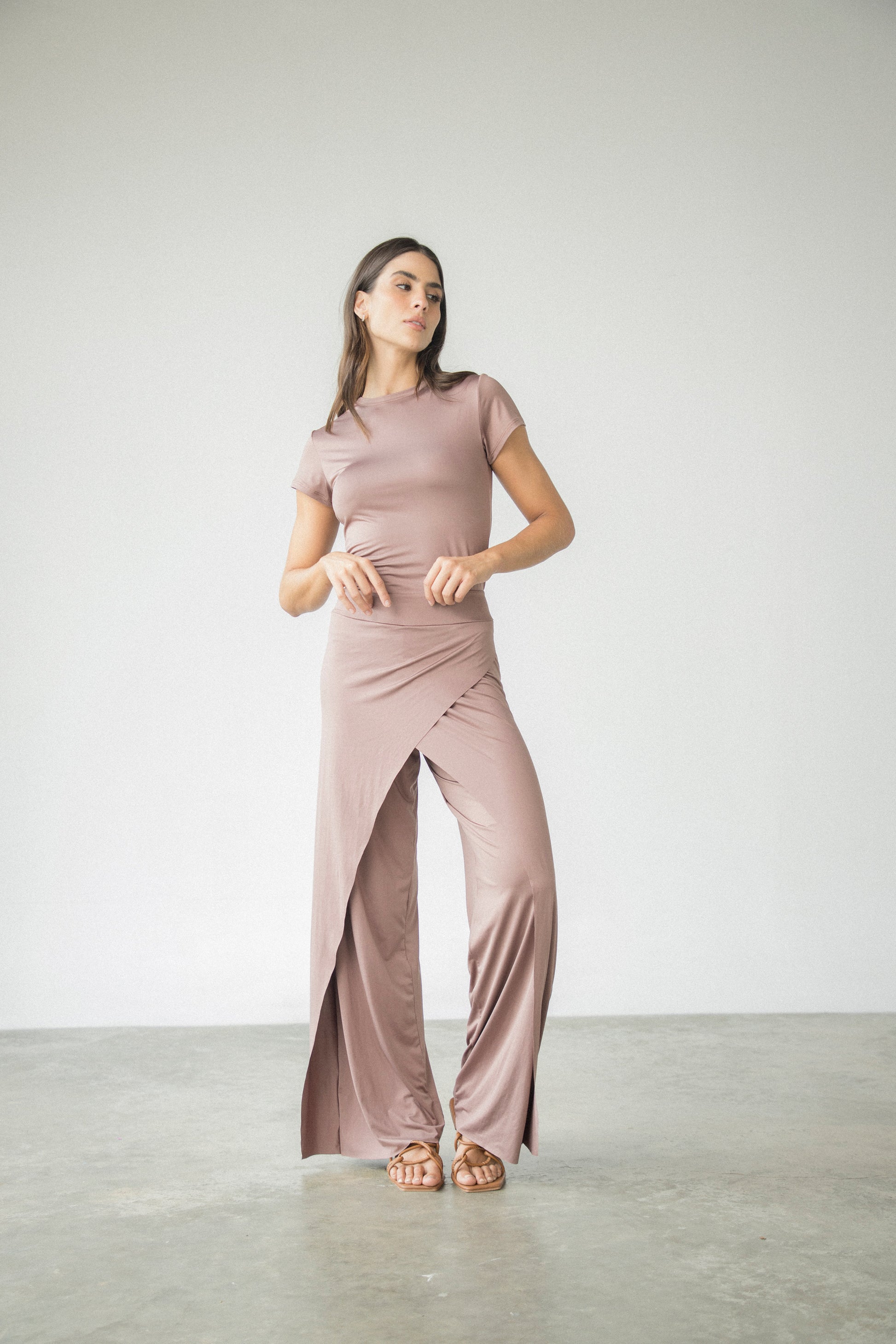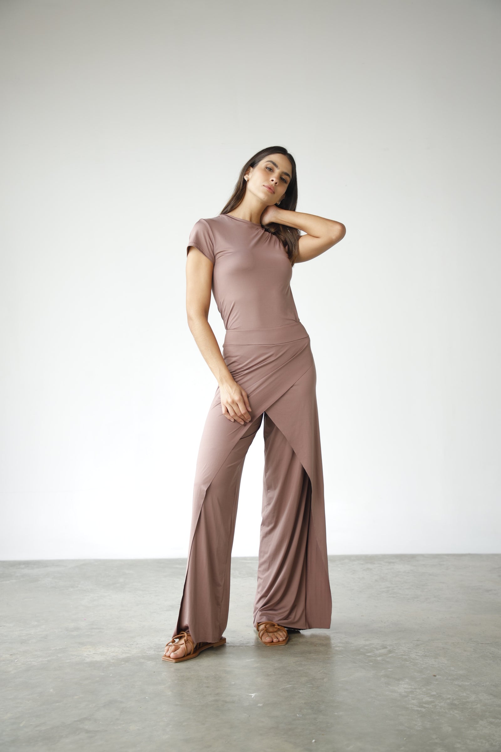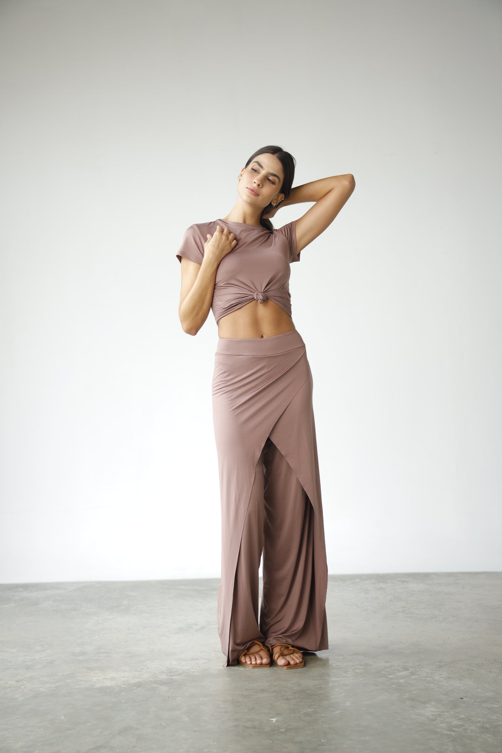 Este pantalón pañuelo, con capas cruzadas en el frente y short interno, te da seguridad y libertad de movimiento. Ligero y amplio, es perfecto para combinar con tenis, sandalias, botas o tacones, adaptándose a cualquier ocasión.